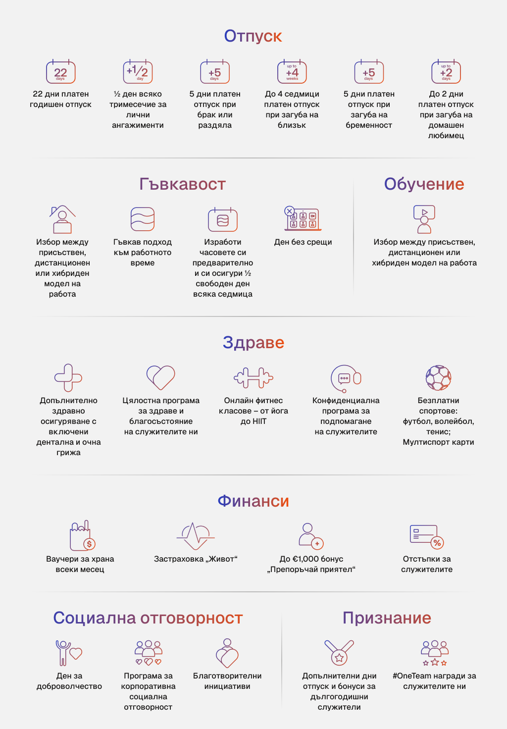 22 days paid annual leave for all employees.